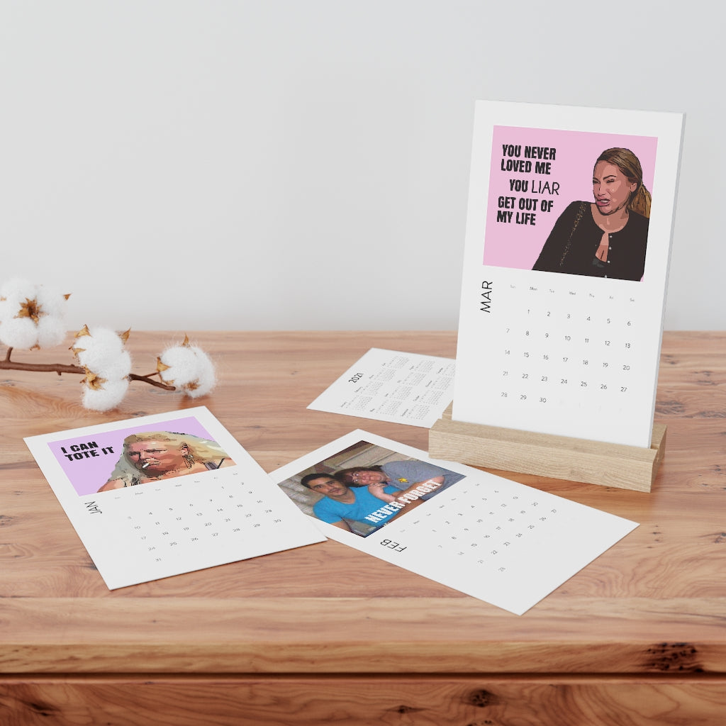 This fun and colourful desk calendar is designed by Morebiggy and features memorable moments from 90 Day Fiance.