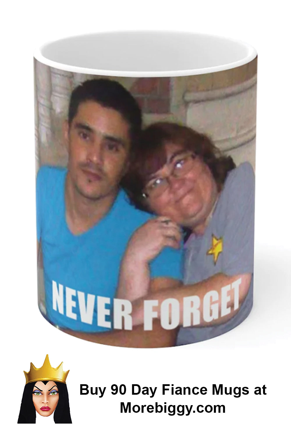 Danielle and Mohammed Never Forget mug designed by Morebiggy. Buy yourself a 90 Day Fiance gift and drink from your 90 Day Fiance mug while watching the newest season of 90 Day Fiance on TLC.